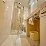 Koupelna má samostatnou toaletu a sprchu, zatímco pokoj má balkón, šatnu a pohovku.